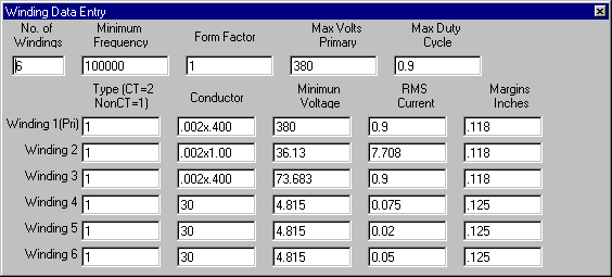 Enter electrical data manually. Then enter the conductor name and the program will enter the conductor parameters from the optional Conductor Library. Or, display the Conductor Library and select a conductor. Or, re-sort the library on thickness or circular mils to facilitate selection. Or, enter conductor data manually. Or, if the conductor is foil, enter the dimensions and the program will calculate the necessary parameters. |